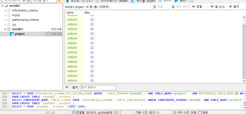 테이블 안에 데이터가 잘 쌓이는 걸 확인할 수 있다.