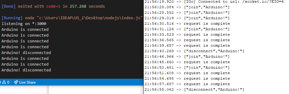 3. 아두이노에서 보내는 데이터는 다른 이름의 socket으로 보내기