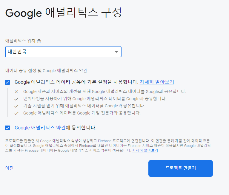 프로젝트 만들기를 눌러서 연결시킬 프로젝트를 만들어주자