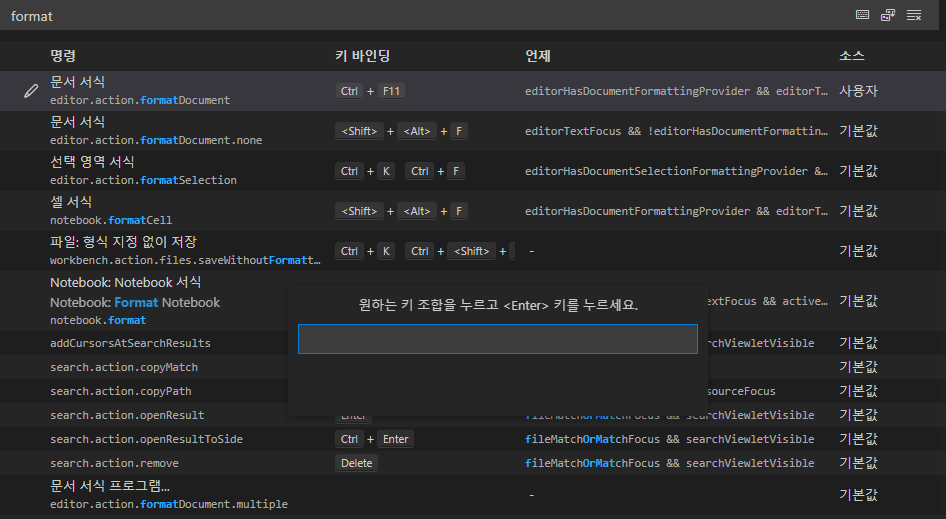 그래서 코드 정렬 단축키를 바꿔보겠다.