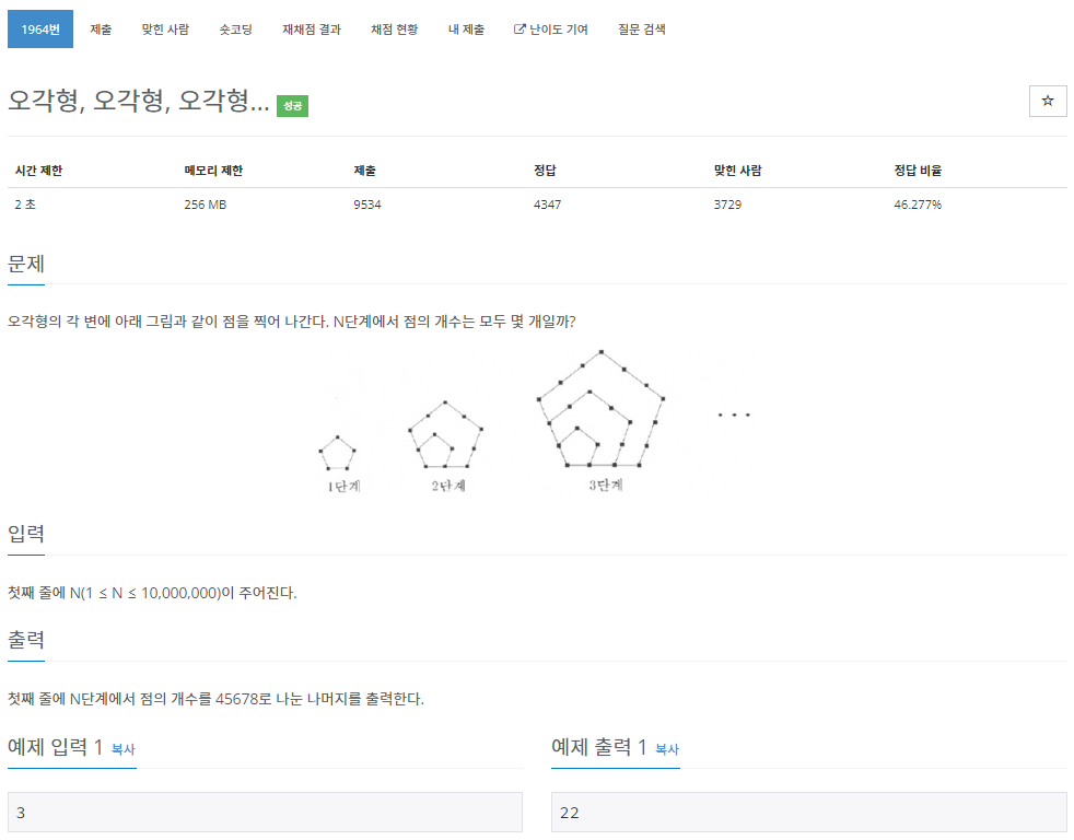 1964번: 오각형, 오각형, 오각형…