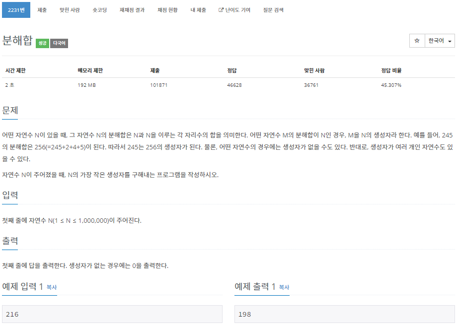 2231번: 분해합