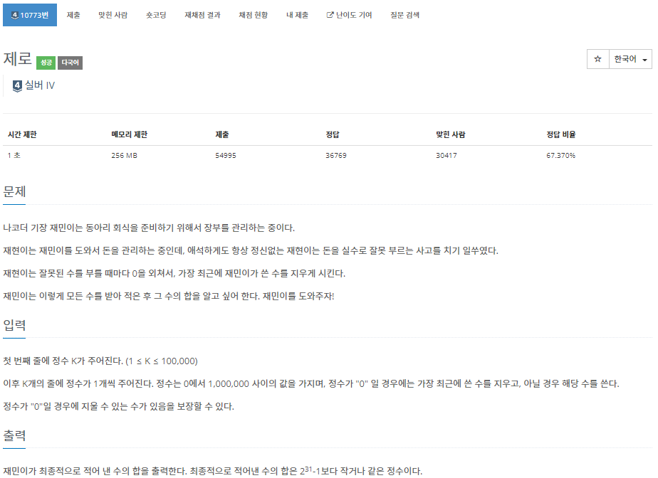 https://www.acmicpc.net/problem/10773