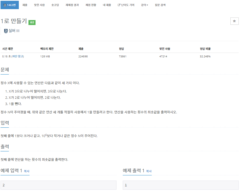 https://www.acmicpc.net/problem/1463