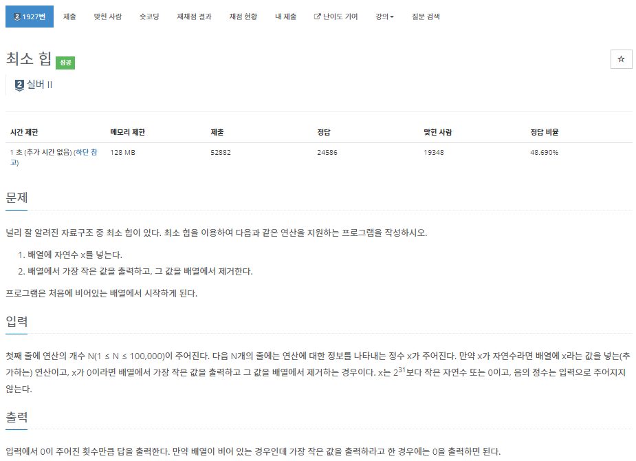 https://www.acmicpc.net/problem/1927