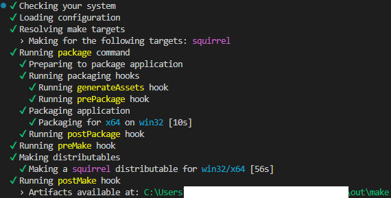 그래서 electron-forge로 빌더 교체를 진행하고 여러 가지 컴파일링을 시도해 봤다.