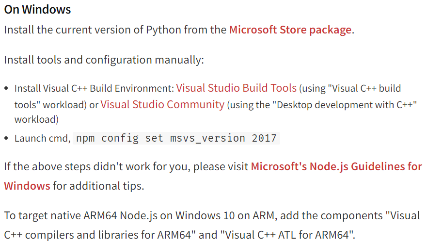 라는 결론에 도달했기 때문에 우선 npm node-gyp에서 설명들을 들여다보자