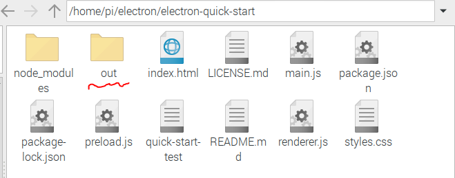 out폴더 -> electron-quick-start-*tartgetOS* -> electron-quick-start 라는 실행파일이 있다.
