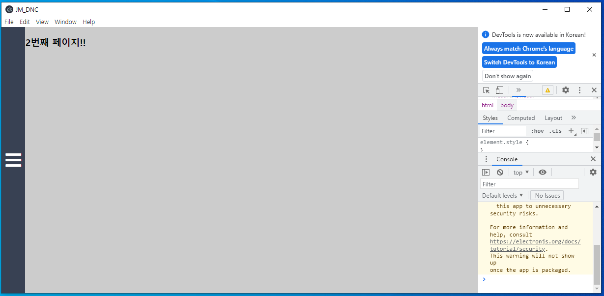 기본적인 ipc통신과 화면 navigation, renderer에서 main.js와의 통신 방식까지