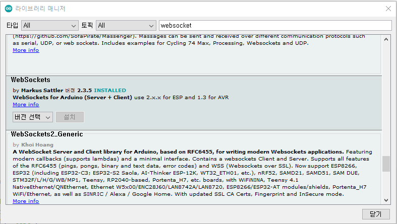 Markus Sattler 형님의 라이브러리인데 웹소켓 관련 별점이 제일 높다.
